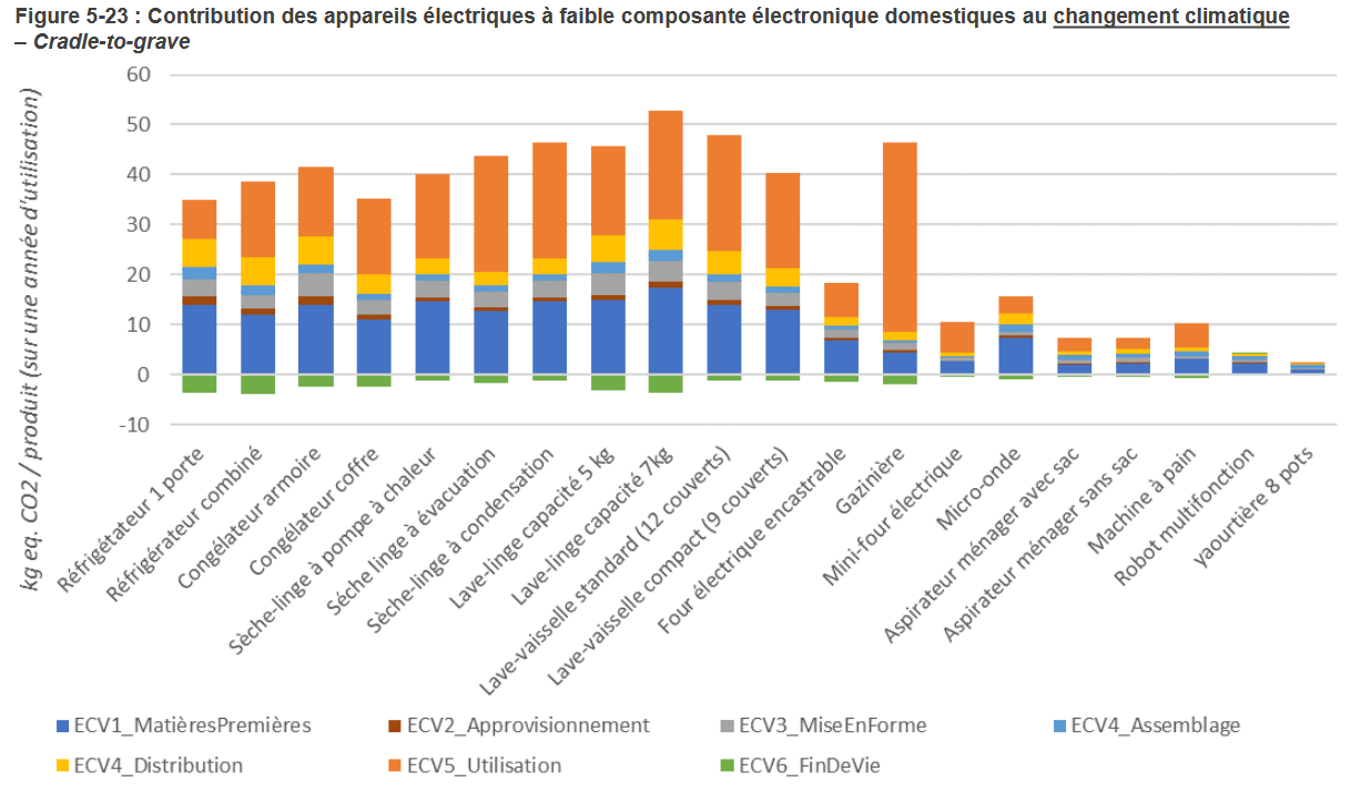 #Graphique impact carbone en cycle de vie, MODÉLISATION ET ÉVALUATION DES IMPACTS ENVIRONNEMENTAUX DE PRODUITS DE CONSOMMATION ET BIENS D’ÉQUIPEMENT, 2018.