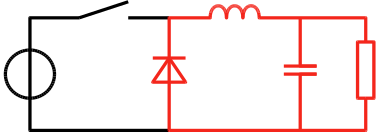 Pendant la seconde phase, l'interrupteur est ouvert, la diode devient passante et le Le condensateur permet de filtrer le |