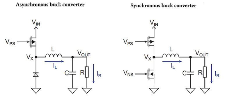 - Le schéma de principe d'un convertisseur Buck asynchrone est présenté sur la figure suivante: