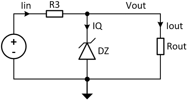 La version de base est la diode Zener comme présenté sur la figure ci-dessous. L'avantage est la simplicité de la mise en oeuvre,. Ce circuit est bien adaptée pour les tension élevées et courant faibles.